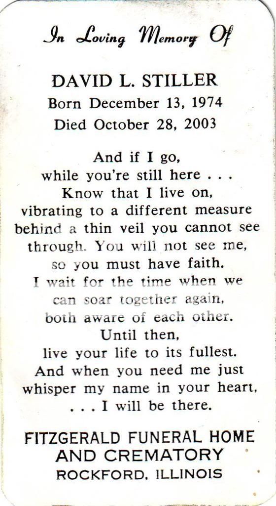 ragnarok1945 Posted March 8, 2009 Report Share Posted March 8, 2009 I'm not afraid of death. I'm afraid of what will cause me to die. I don't fear that too greatly unless it's too slow and painful' date=' besides after death maybe I'll be reunited with my friends in the afterlife[/quote'] I need to say this: If there is an after life and when I die I mightbe able to see my fater for the first time other than in picture that isnt even a real pic o him though I'm told that he does look like the person in the pic and I've seen his daughter and she looks like the kid in the pic (front o funeral card) http://i626.photobucket.com/albums/tt349/onedraco13/Scan10001.jpghere is te back of the card from the funeral tat me and my mom missed:http://i626.photobucket.com/albums/tt349/onedraco13/Scan10002.jpg(caution pics may be big):cry: I never go to meet my father except when I was a baby and that was only once. he died in 2003 at the age of 29. Me and my mom didnt know of his death until 2005 and we never knew that he was my father until last year. :cry: I'm sorry, Prince of Death. I had the same situation with my grandfather passed away, I was barely even 2 when it happened, I wish I could see him again. Link to comment Share on other sites More sharing options...
