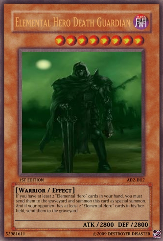 Kotaro Posted April 25, 2009 Report Share Posted April 25, 2009 Here are mine: [spoiler= Card Lore]When this card is Tribute Summoned successfully, you can remove from play up to 3 Warrior-Type monsters in your Graveyard. Draw cards equal to the number of cards that you removed from play by this effect. This card gains 200 ATK and DEF for each of your removed from play cards. If this card has 2800 ATK or more, you can Special Summon 1 Warrior-Type monster from your Graveyard and is destroyed at the end of your opponents next Battle Phase. [spoiler=Card Lore]This card cannot be Normal Summoned or Set. This card can only be Special Summoned by removing from play 5 LIGHT monster in your Graveyard. Once per turn, you can toss a coin and call it. If you call it right, this card gains 200 ATK and DEF for each of your removed from play cards. If you call it wrong, decrease this cards ATK and DEF by 100 for each of your removed from play cards untill the End Phase of the turn that this effect was activated. [spoiler=Card Lore]Once per turn, you can flip this card into face-down Defense Position while it is on your field. When this card is Flip Summoned, control of this card switches to your opponent's field. While this card is on your opponent's field during his/her Standby Phase, your opponent must discard 2 cards from their hand. During your opponent's End Phase, control of this card switches to your field. Link to comment Share on other sites More sharing options...