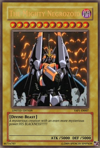 Leturn Master Posted June 1, 2009 Report Share Posted June 1, 2009 I can't really spot OCG errors on my own (I'm not going to look at other people's posts' date=' that's cheating :)), so I guess I can just judge on balance and usefulness. [u']Hunter:[/u] I see a Level 4 monster with the perfect circle ability concerning destruction by card effects. And the easiest way to get a card off the field is with card effects... well, interesting... and I kind of understand the perspective of the SS Mech, despite that it makes you lose a monster in exchange for one. The LP increase idea is quite good, and I see a lot of potential with it (especially with the fact that you can bring him back multiple times). I can him being played over and over again in a duel (especially with three copies). Pitski The fact that this card will have 2300 ATK something like 1/3 of the time shows that he's not very good stat-wise for a 1-tribute monster. Add that to the fact that if he does take a hit, or you take damage while he's out, there are benefits in it for you AND your opponent. So while he's balanced, I don't think he's useful...btw, this card looks like it was sort of made for "Yubel". "Hunter" is the winner in my opinion. His card has more value in a duel, though it's probably not going to be unlimited like "Pitski's". But all in all, you've both got some original and well-made cards! :mrgreen: As much as i want to add your vote, you did not meet the required number of posts. You currently have 144. the required post to vote is 150. DONE!!! Link to comment Share on other sites More sharing options...