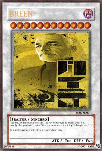 kamidarko Posted June 8, 2009 Report Share Posted June 8, 2009 Hello and I am a newfag at the moment. I was wondering if anyone would review my works so far and give me a few pointers. Or you can ramble on and on about my mistakes. Whatever you want is cool. For after you look at them read this Well I kinda started with a "Master" card. A card that's as strong as it is but has major drawbacks. Like not being able to attack or losing lifepoints to attack. Then there are "Owner" cards prity much the second best of them all. There alright with some neet effects. The Synchro cards are what I meant to be the "God" cards. There mostly just for fun tho. So yea. Point my faults or make me blush. Your choice. Link to comment Share on other sites More sharing options...