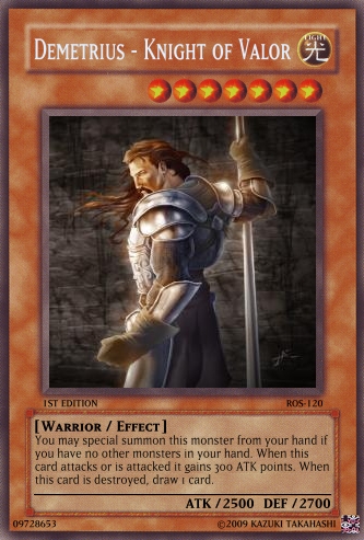 soyossif Posted June 29, 2009 Report Share Posted June 29, 2009 I agree with Evilfusion' date=' mainly. He needs something different to make him a bit stronger... since you're at tiny font already, I'd stick this on the end; "If this card is destroyed and sent to the Graveyard, remove it from play instead." That might SEEM immaterial, but it really makes him MUCH better. See, the effect doesn't distinct that its effect only activates when he removes himself from play, so it doesn't matter how he was sent there, he will still revive himself at any End Phase. Which kinda makes him like D.D. Scout Plane, only he's an 8 star that can possibly unload the hurt. In fact, viewed in that light, he becomes perfect tribute fodder for Macro Monarchs, and in fact could make an entire RFG swarm deck plausible...[/quote'] That could make it work, but it can also screw you up... I'll add that. I'm also going to make some supprot card from him. Also, for a deck based around him, cards like Gold Srcophagus will be needed to get him in your hand... EDIT: A simple but effective Support Card added. Love the support and monster itself (10/10 for both cards). In a realistic deck, Golden Sarcophagus is not practical (it's one of the most expensive cards around), so you might want to use Different Dimension Capsule instead. Link to comment Share on other sites More sharing options...