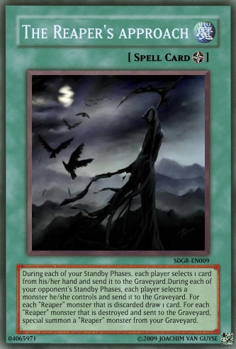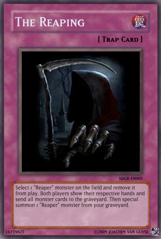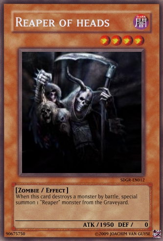 jvguyse Posted August 5, 2009 Report Share Posted August 5, 2009 I've made a set of reaper cards, heavily focussing on the graveyard, etc, quite high atk though, but hey, they are reapers, they are immortal:p Link to comment Share on other sites More sharing options...