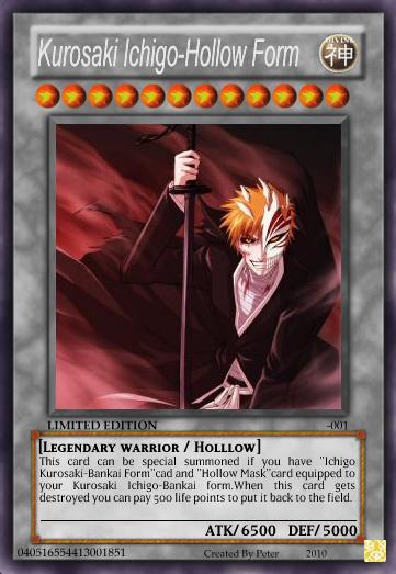 Music8aznl Posted March 3, 2010 Report Share Posted March 3, 2010 You make Bleach card...You are new member, so I suggest you look at OCG..... Link to comment Share on other sites More sharing options...
