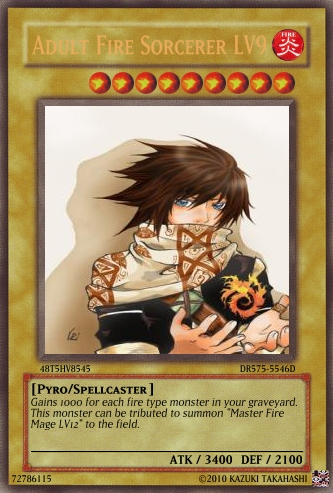 A.Prime Posted March 28, 2010 Report Share Posted March 28, 2010 hmmm1. No attachments...it's against the rules2. there is not exist Pyro/Spellcaster-Type monster.... the Atribute is PYRO and the sub-Type is a Spellcaster...3. Try to make Effect Monsters...because Normal Monsters mean 2thinks: a. The easy way to make a card. b. Low creativity. anyway I like the pic.. for 1st card 4/10 Link to comment Share on other sites More sharing options...