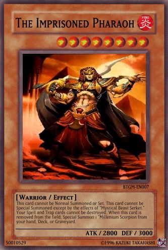 Stricklord Posted July 7, 2010 Report Share Posted July 7, 2010 "This card cannot be Normal Summoned or Set. This card cannot be Special Summoned except by the effects of 'Mystical Beast Serket.' Your Spell and Trap cards cannot be destroyed. When this card is removed from the field, Special Summon 1 'Millenium Scorpion' from your hand, Deck, or Graveyard. Link to comment Share on other sites More sharing options...