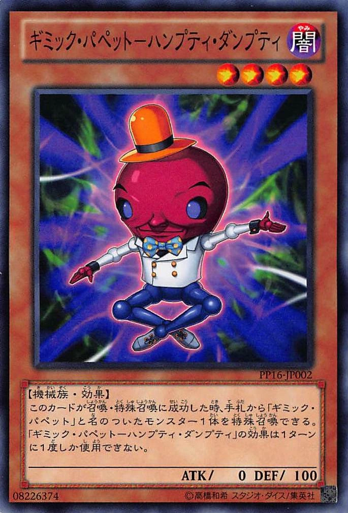 More than 3 characters Posted December 21, 2013 Report Share Posted December 21, 2013 ' When this card is Normal or Special Summoned: You can Special Summon 1 "Gimmick Puppet" monster from your hand. You can only use the effect of "Gimmick Puppet Humpty Dumpty" once per turn. Cannot be destroyed by battle. When you take battle damage from a direct attack while this card is in your Graveyard: You can Special Summon this card from your Graveyard in face-up Attack Position, and if you do, take 1000 damage. You can only use this effect of "Gimmick Puppet Shadow Feeler" once per turn. If this card as an Xyz Material would be sent to the Graveyard, banish it instead. Two new Gimmick Puppets from Premium Pack 16. Humpty Dumpty is signifigantly less restrictive compared to the anime version. Link to comment Share on other sites More sharing options...