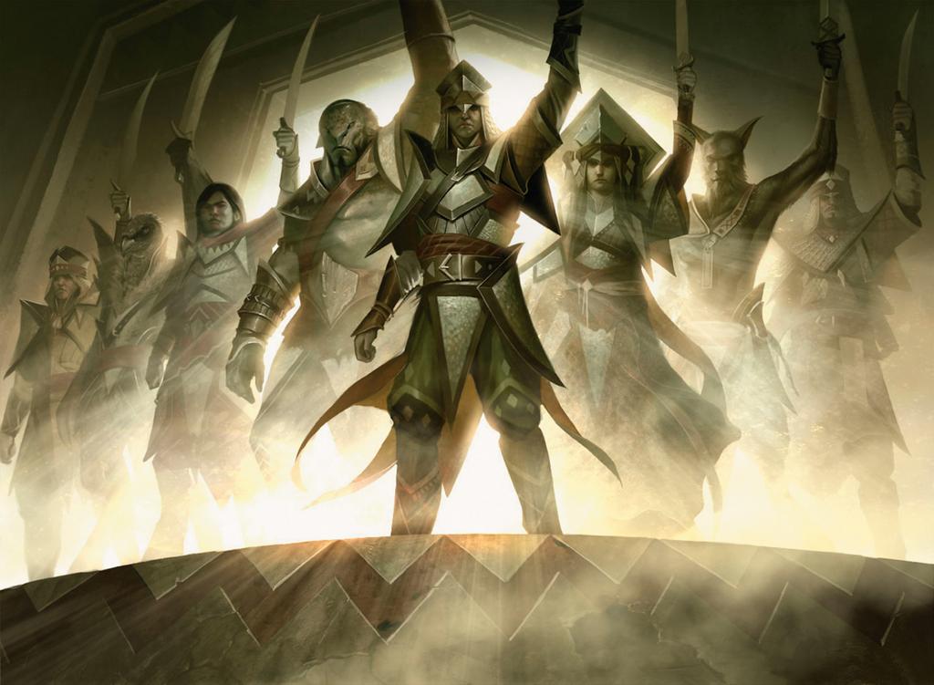.Rai Posted July 26, 2014 Report Share Posted July 26, 2014 Updating this with info as it streams in.Khans of Tarkir- Cards: Zurgo Helmsmasher- Arts: In-Trailer, Picture, Tiger-People, The Abzan Houses, The Jeskai Way, The Sultai Brood, The Mardu Horde, Surrak Dragonclaw- "This is a LARGE-SMALL-LARGE set with a unique draft structure and time travel element."- "Tarkir is a plane of five warring clans! Each worships one aspect of the (now extinct) dragons..."- "The Abzan value endurance."; WBG Wedge; Dragon scale symbol; The Abzan Khan is Anafenza- "The Jeskai admire the cunning of the dragons"; URW Wedge; Dragon eye symbol; The Jeskai Khan is Narset- "The Sultai respect the the ruthlessness of dragons"; BGU Wedge; Dragon fang symbol; The Sultai Khan is Sidisi- "The Mardu value the speed of the dragon"; RWB Wedge; Dragon wing symbol; The Mardu Khan is Zurgo Helmsmasher- "The Temur praise the savagery of the dragon"; GUR Wedge; Dragon claw symbol; The Temur Khan is Surrak Dragonclaw- Wedge set confirmed. Wedges is only in this set, not the whole block.- Returning mechanic is Morph- Forty possible prerelease cards at the Khans prerelease: Eight rares per colourFTV: Annihilation- Release Date: August 22nd, 2014- Arts: Cataclysm, Living Death, Rolling Earthquake, Wrath of GodDuel Decks: Speed Vs Cunning- Release Date: September 5th, 2014- Zurgo Helmsmasher vs Arcanis the OmnipotentCommander 2014- Release Date: November 7th, 2014- 5 Monocolor Decks- Teferi, Temporal Archmage, Ghoulcaller Gisa- "Teferi, Temporal Archmage can be your commander"Other- Reprinting the first four Duel Decks Link to comment Share on other sites More sharing options...