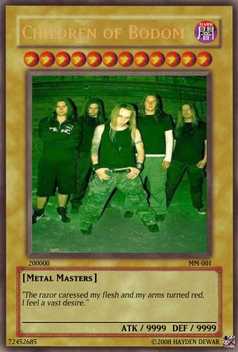 Nekru Posted March 25, 2008 Report Share Posted March 25, 2008 Here is a set of metal bands/artist cards I made today (in no particular order). Tell me what you think of them (EDIT: Censored versions uploaded): Link to comment Share on other sites More sharing options...