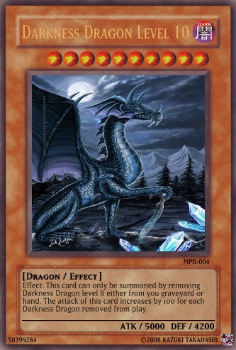 Huntar! Posted April 8, 2008 Report Share Posted April 8, 2008 Find Images that are already not yugioh card pics. It angers me... >.< LV not Level. Summoned"Darkness Dragon" not Darkness Dragon. Use quotes Your cards are REALLY OVERPOWERED. That angers me as well. >.< you got 2 " >.< " so that means you got a... um... 4/10 for effort. *try harder* Link to comment Share on other sites More sharing options...