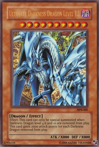 Shin Akuma Posted April 9, 2008 Report Share Posted April 9, 2008 People's love for dragons will never die. Especially from me.OK, lets take the rating one card at a time shall we?Darkness Dragon Lv. 4:This card is a bit too powerful, IMO. But the reason is, is that a 2000 ATK monster with only 4 Level Stars and also attacking twice per turn if it is the only monster. What i would recommend is to tone it down just a bit by making it at least a 5 Level Stars or by bringing its ATK down to 1800-ish, more or less. Otherwise good pic and good idea. D. Dragon Lv. 6:The leveled monsters are always evolving from its previous collegue. That is a good way of easily bringing out big guns. However, many people, including myself have taken the liberty to create and recreate BEWD reincarnates with its 3000ATK/2500DEF properties. No more, i think if you tone it down just a little, perhaps 2600ATK and 2000DEF, this card will be a bit more original and not a cheap copy of BEWD. D. Dragon Lv. 8:This time, evolution has a drawback, in this case, where activating its effect will cause you to not attack with DD Lv. 8. The thing is with this card is that its WAY overpowered, but hey, Dragon's are supposed to be powerful, right?Again, the BEWD reincarnate again but this time, stronger. Many people will and shall continue to do so, especially me and the new noobs, create ridiculous cards to emulate the legend of the BEWD.Keep in mind next time to tone it down and/or set restrictions.Furthermore, do not use bad quality pics of original Yu-Gi-Oh cards. If you can find hi-def card pics, by all means use them but this one is kinda crappy, IMO. D. Dragon Lv. 10:The only thing here is the repeated powerhouse dragon. The little annoying thing that ticks me off is the additional 300ATK. Might as well just add it into the ATK already set (5300ATK) and get rid of the last effect as it is useless. This is because you have already taken 3 out of your graveyard to summon the last 2 D. Dragons. Waste of ink and time if you ask me. Overall, i like the pic and the intention is there, but not expressed fully. and finally, the King of D. Dragons...D. Dragon Lv. 12:Personally, i like this card. Even if it is overpowered but one thing. Again, unnecessary effects. If the effect has already taken place then do not repeat it. Set this card's ATK to 8000 because your current effect is 4, 6, (assuming 8 as well), and 10 must be removed before even summoning that card. So thats the unnecessary effect.I personally i like artwork, cuz i cant seem to find it anywhere. LOLZ.And also because this card is the final permutation of the Darkness Dragon, therefore, it has my permission to be OVERLY POWERFULL. In all, fix your "R" key. I'm noticing missing "R's" here and there, especially in the "your" parts of the effects. And speaking of effects, no need to put "effect:" in the effect description. Unnecessary and repetitive, and furthermore, makes you look like a noob. :P My ratings: DD4: 7/10DD6: 6.7/10DD8: 5/10 (due to crappy REBD, if it wasnt however, it would have recieved a 8/10.)DD10: 8.5/10DD12: 11/10 (Why? Cuz i feel the wow bonus in there.) PS: If you have read this entire wall of text, good job. Link to comment Share on other sites More sharing options...