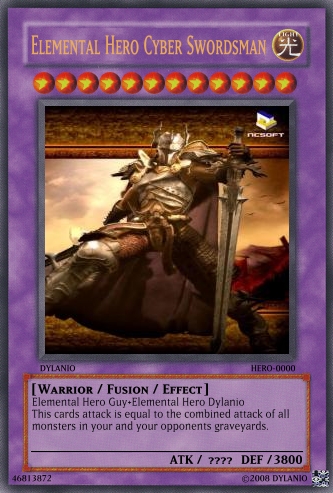 iKiller Posted November 9, 2008 Report Share Posted November 9, 2008 Good picture, although this shouldn't be in "Finished Cards / Sets". I'm glad that you're a good artist, but there is still that bit of room to improve. It's not overpowered at 2800 ATK, so awesome, 9.9 / 10 Link to comment Share on other sites More sharing options...