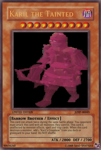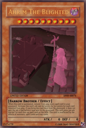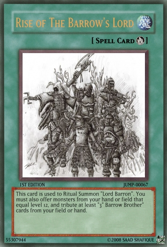 Darkraizr Posted April 12, 2008 Report Share Posted April 12, 2008 My Barrow Brothers cards I made, with Lord Barron and The Ritual. I know some of them are kind of overpowered, but I made them for fun....None of Da Pictures are mine. Link to comment Share on other sites More sharing options...