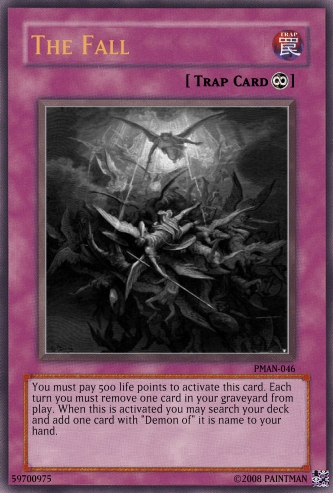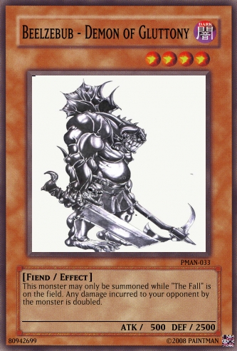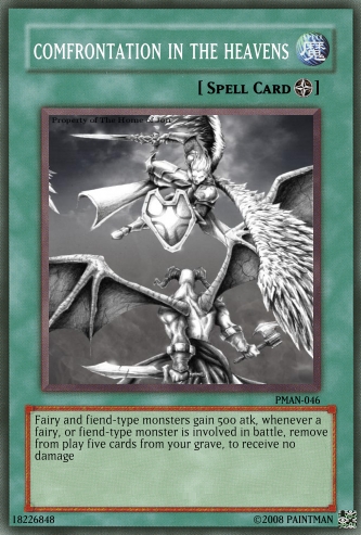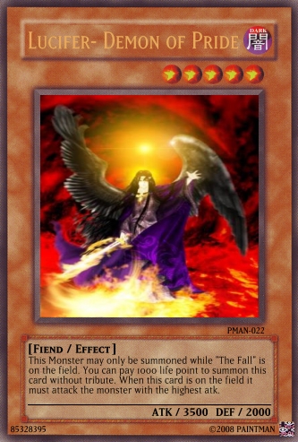 adzman+namzda Posted May 4, 2008 Report Share Posted May 4, 2008 http://i29.tinypic.com/10eeete.pngThis card cannot be nomal summoned or set.This card cannot be special summoned except by tributing "Dark Destiny- God Ra" and 1 other monster on your side of the field. this card gains its effect while "True Destiny" is on your side of the field.The attack of this card becomes equel to the combine total of Double the tributed monsters Attack and Defence (this effect can only be activated if the tributed monsters were "dark destiny" monsters).sorry wasnt sure if you said yes or not butb here the are near enough all my work. Link to comment Share on other sites More sharing options...
