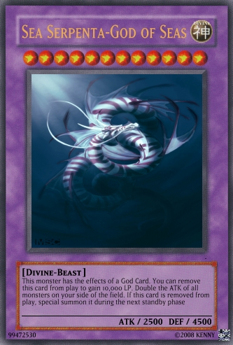Neiko Posted July 14, 2008 Report Share Posted July 14, 2008 really i cant see how its ov'pw....... Exactly. This card might be abit underpowered.First you have to have the 3 New-ish gods in th gravethen you have to draw until you draw all of em. You only 5 Monster Zones so even if the monster you draw is weak you still have to play it. I could see this card getting banned in the accual game.But great overcard. Not a fan of the pic however -.- Link to comment Share on other sites More sharing options...