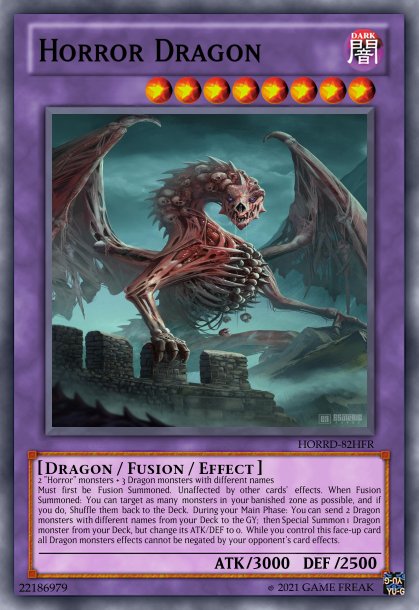 MadaraUchiha1 Posted January 7, 2021 Author Report Share Posted January 7, 2021 On 1/5/2021 at 9:36 PM, Zamazenta said: You can Special Summon this card from your hand by banish 2 or more Monsters from your GY whose combined Levels equals 10. Once per turn (Quick Effect): You can Tribute this card, then target 3 of your Dragon Monsters with different names in your GY; Special Summon them. You can banish 3 or more cards in your hand and Special Summon this card from your GY, but banish it if it leaves the field. You can only use 1 "Black-Haired Dragon Girl" effects once per turn, and only once that turn. You can Special Summon this card from your hand by banish 2 or more Monsters from your GY whose combined Levels equals 10. Once per turn (Quick Effect): You can Tribute this card, then target 3 of your banished Dragon Monsters with different names; then Shuffle them into the Deck. You can banish 3 or more cards in your hand and Special Summon this card from your GY, but banish it if it leaves the field. You can only use 1 "White-Haired Dragon Girl" effects once per turn, and only once that turn. 2 "Horror" monsters + 3 Dragon monsters with different names Must first be Fusion Summoned. Unaffected by other cards' effects. When Fusion Summoned: You can target as many monsters in your banished zone as possible, and if you do, Shuffle them back to the Deck. During your Main Phase: You can send 2 Dragon monsters with different names from your Deck to the GY; then Special Summon 1 Dragon monster from your Deck, but change its ATK/DEF to 0. While you control this face-up card all Dragon monsters effects cannot be negated by your opponent’s card effects. Thank you for the entry’s! Link to comment Share on other sites More sharing options...