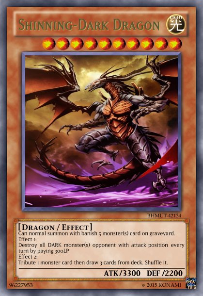 MadaraUchiha1 Posted January 12, 2021 Author Report Share Posted January 12, 2021 On 1/10/2021 at 3:12 AM, Nobody Really said: If this card destroys a monster by battle: Inflict damage equal to half the DEF of that monster. All face-up monsters your opponent controls are switched to Defense Position and their Battle Position cannot be changed. When this card destroys a Defense Position monster by battle: Inflict Piercing Battle Damage to your opponent. Once per turn, you can remove 1 Xyz Material from this card: Destroy all cards on the field except for this card, then inflict damage to your opponent equal to the number of cards destroyed ×500. Just a few simple cards for your contest. Hope you like them. Thank you for entering the contest On 1/7/2021 at 8:31 PM, Kaze_Matsukaze said: How bout this! Thank you for entering On 1/10/2021 at 5:53 AM, Yaminahash said: Charizard and Shiny Charizard Remember only in English because that’s the only language in can read Link to comment Share on other sites More sharing options...