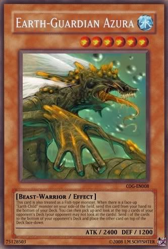 schyshter Posted May 16, 2008 Report Share Posted May 16, 2008 [spoiler=the intro...] i'm not one for lengthy, melodramatic introductions, but i'm bursting at the seams here, so please, hear me out... when i first came to YCM, i posted this set in the WRITTEN CARDS section but never got around to creating the cards... until now... since i already had the effects covered, i had free time to make the pics more personalized, which i've never done before... this is mostly due to the fact that i've recently experienced something of a creative system crash. i can't come up with anything new, but after some thought, i realized that it was a blessing in disguise... i had a mental overload when i first came here and posted many ideas that were met with a lot of praise. sadly, i just never had the time to finish my works... and so my COMBO, CAMEO and AMBUSH sub-types have never been completed...my arch-types - Spell-Breaker, The Shaan, & Chicane Guild - are now faded memories to the members to whom i promised a hasty completion...the Phantom Vortex Set has been put on the back burner...my Zombie set has withered away to nothingness...and GOD HUNTER has won the battle of the AGENTS... until these cards are completely done and out of my system, i cannot continue my quest to become a YCM legend... baby steps... and i'll start with THE CHAMPIONS OF GAIA... the art i used for these creations don't belong to me. i've edited each of them in one way or another, but the original pics belong to one of my favorite artists... Wen-M now, on to the cards... [spoiler=Spell Support] art cred goes to Fedorworks for the 1st card, and Booshnig for the 2nd... the easiest and fastest-created cards in this set to date. i only made a few changes to the original pics; cropping, contrast, and lightning... [spoiler=Earth-Guardian Monsters] well, unless you guys disagree... http://i300.photobucket.com/albums/nn22/schyshter/Champions%20of%20Gaia/EGAcard.jpg' alt='EGAcard.jpg'>you'll see later on why these cards each have 2 types... http://i300.photobucket.com/albums/nn22/schyshter/Champions%20of%20Gaia/EGB.jpg' alt='EGB.jpg'> [/align] aside from cropping them and altering the color-balance of the second card, these pics don't differ from their original states... [/center][/center][/align] Link to comment Share on other sites More sharing options...