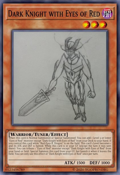 Naidraug Posted November 22, 2021 Report Share Posted November 22, 2021 9 hours ago, Rayfield Lumina said: Oh, great, more cards with self-drawn artworks! What can I say? You have a pretty good sense of balance, they all are well done imo. Alright! Good to see you posting. Also, I didn't know you write fanfiction, Zama, interesting! Man, it's awesome that this thread inspired you to post this creation of yours. Wish I could see more of the drawing, it seems there's more to it judging from that lines on the right that kinda make me think it's a wing. What can be seen looks pretty good, though. The card itself is quite balanced, is anything I'd say it the first monster effect could be a bit stronger (like +300 ATK per Extra Deck Monster, only because, as you say, this is the Ace of the protagonist. A pity you don't remember more about the story >_<'' Looking through my sketch/note book. i had made other cards to possibly expand into a wider "Dragotech" archetype. And unfortunately that is all for the drawing. I don't think I was confident enough in drawing then, and thought I would ruin it if i did any more. I could probably try and make an improved one. I have drawn off and on since. Might be fun to revisit. Edit: Here's just a fun card I mad up on the fly. A bit conditional. I also I feel like it's lacking something. I'm just not sure what. Chroma-Eyes Nuclear Dragon Level 10 LIGHT ATK 3500/ DEF 2700 Dragon/Synchro/Effect 2 Tuners + 1+ non-Tuner Dragon monsters If this card is Synchro Summoned using 2 Tuners with the same level, but different attributes: you can reduce this card's ATK to 0 until your next Main Phase 1; destroy all cards on the field, except this card. If you do, you can only Special Summon this turn up to the number of cards that were destroyed by this effect. Link to comment Share on other sites More sharing options...
