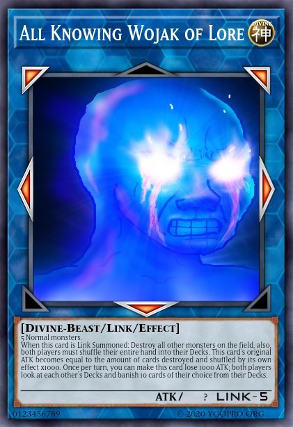 Pommelo Posted January 11, 2022 Author Report Share Posted January 11, 2022 On 12/9/2021 at 8:33 AM, Libracor said: Kuribohnes DARK Level 1 Zombie/Effect When 1 or more monsters you control is destroyed; You can Discard this card: Special Summon 1 of those destroyed monsters in Defense position, and if you do: Destroy 1 monster on the Field. Oops, I'm sorry Libracor, I never noticed you posted here, swamped as I am in work. Thanks for posting! Kuribohnes sounds pretty brutal retaliation to punish your opponent (heck, you can even trigger the destruction yourself and make some fun plays. I like it! 8 hours ago, drowsyCoffee said: Grave Robber Synchro Monster Level 8 DARK Warrior 2700/1700 1 tuner + 1 non-tuner Monster (Quick Effect): Banish 1 card in either players GY; Place 1 Stealth Counter on this card While this card has any Stealth Counters on it, it cannot be targetted for effects or attacks Remove any number of Stealth Counter(s) on this card; Banish cards on the field up to that amount You can only use each effect of "Grave Robber" once per turn Kinda thought about this card, wanted to make a generic boss monster/piece of interaction out of it. The card is based on the Grave Robber from Darkest Dungeon, more specifically the Second game. In terms of gameplay, the Banish cards in GY eff is supposed to represent the GR using Dead of Night, a skill you can cast on an enemy corpse to consume it, to set themselves up, earning Stealth much like in the game. Similar to DDs GR, managing Stealth is your main gameplay loop, as GR is extremely frail without them, but at the same time, it can consume them to deal some rather insane swings. Decided to center the second eff around something more like Lunge or Dagger Throw poping sht on field rather than have it use something like Poison Darts to be dishing out counters that negate card's effs while on field like i originally thought about simply because of how strong Banishing cards is at the moment. Bit of a "Fuck DPE in particular" card Daaamn, once per turn Quick Effect GY banish, and becomes harder and harder to beat as the counters build up, then a brutal blast of banishment that, at least to the current wording, does not target, as a finisher, plus the all time decent Level 8 synchro (though IDK, perhaps Level 6 would have been better for more flexibility and generic power?) Link to comment Share on other sites More sharing options...