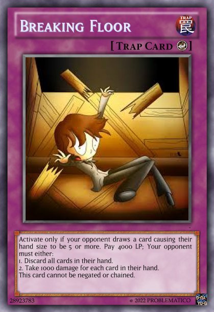 All in all it's hard to gauge. it feels like an easy to setup OTK going first and a great option for "Mill but actually make your opponent draw" decks. Maybe start by halving the LP cost on you because the condition is tough, and the card is slow. I still feel this card is terrifying though.