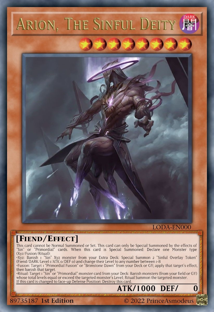 PrinceAsmodeus Posted March 31, 2022 Author Report Share Posted March 31, 2022 13 minutes ago, Kokoroshi_Games said: So far, I’ve just gone through the field spell and 7 deadly sin monsters which were fun to read. Though really reliant on the field spell, their effects are fun and match each of their respective sins (which I thought was really cool). Also, greed is broken and gives an INSANE card advantage, might even end up banned if it were a real card. I’ll read trough the rest of the cards once you polish them and put them on Realistic cards. Even those have been polished in order to work better with the engine. Their effects are of course intentional to match their respective roles as the Seven Deadly Sins, but now work a tad bit better with the rest of the engine, which is heavily based on banishment and deck burning. As for the Field Spell, you will come to find out just how strong it is with the archetype when you re-read the first effect it has about the effect activations Link to comment Share on other sites More sharing options...