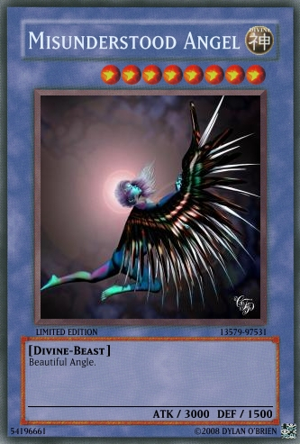 Mutant Monster RAEG-HAPYP Posted May 22, 2008 Report Share Posted May 22, 2008 The effect one is better and this is a disclaimer [i do not own the artwork used for my cards. I only use them as a means of increasing the overall quality and effect of my work. I do not claim ownership of them.] Link to comment Share on other sites More sharing options...