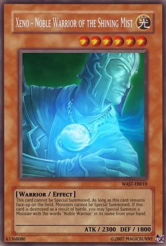 N00B Hunter Posted May 24, 2008 Report Share Posted May 24, 2008 Here's my Noble Warrior set! I've been sitting on this for a while, and after I finally made the support cards I decided to "publish" it in the finished sets forum! please rate the cards & looks for OCG and stuff!!http://i201.photobucket.com/albums/aa295/Leturnmaster/xenopic-1.jpg these guys were support cards I made for a contest, are they balanced? I'm not sure about Noble Focus, but I think Elemental Completion is alright... EDIT: In response to those of you who have pointed out OCG, I fixed all the problems I saw that needed fixing, so please enjoy! :mrgreen: Link to comment Share on other sites More sharing options...