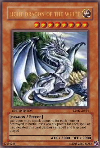 SHINI [THE CHAOS] Posted June 3, 2008 Report Share Posted June 3, 2008 [align=center]"This card cannot be Special Summoned. When this card destroys a monster as a result of battle, you may remove 1 DARK monster in your Graveyard from play. During each of your Standby Phases, you may inflict damage to you and your opponent's Life Points equal to the amount of DARK monsters removed from play x100."[/align] Link to comment Share on other sites More sharing options...