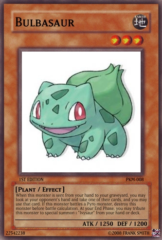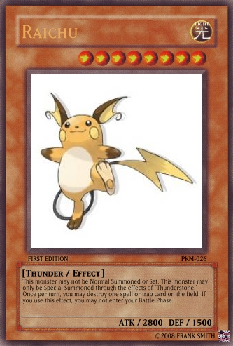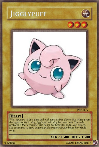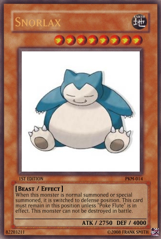 Kurohyasha Posted June 1, 2008 Author Report Share Posted June 1, 2008 [align=center]Fail Police Yours cards are Overpowered[/align] [sigh] Is there any way that I can get some positive messages?! I only do them the way I feel that they are, and the powerful ones are only because they're some of the best in Pokemon! As Rodney Dangerfield used to say, "No respect!" :cry: But Squirtle I do agree with. Maybe I should have lowered his ATK a bit. But I think the DEF is perfect, I mean, look at D.D. Trainer and Charcoal Inpachi. They're both Level 1 monsters and have DEF of 2000/2100 respectively! Jigglypuff's another one I agree with, but Pikachu's strength comes in his speed, not his physical strength. And the DEF for Snorlax is perfect, because he is IMPOSSIBLE to budge! By the way, I'm open to any and all suggestions. Besides them being overpowerful. Link to comment Share on other sites More sharing options...