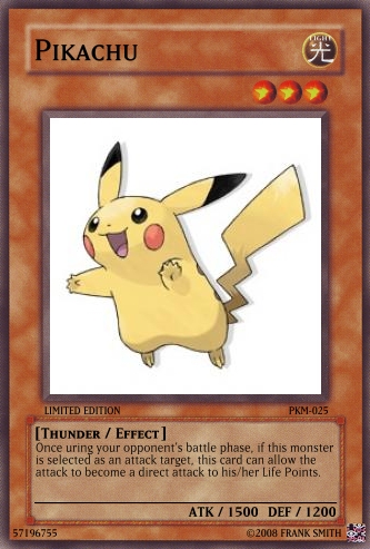 Kurohyasha Posted June 1, 2008 Report Share Posted June 1, 2008 One of the characters in a Yugioh GX RPG I am involved in uses a Pokemon deck, and here are some of the cards he uses. Still need to find a picture of Evolution Stones, and the Whirl Islands, if anyone can help me. Credits: Pokemon and trainers- Nintendo/GamefreakThe Thunderstone- Well, I'm trying to find it. All I know is that I got it from Deviantart, but that's it. Link to comment Share on other sites More sharing options...