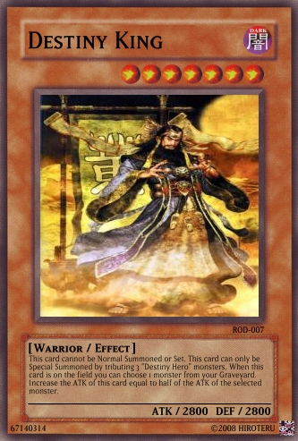 Wyhe Posted June 2, 2008 Report Share Posted June 2, 2008 Considering the fact that most Destiny Heroes have low attack,this card is not that good.Score:6.8/10 Adivice from the LORD:To use IMG tags,just put them in front & behind the URL. Advice #2 from the LORD:Don't double post. Link to comment Share on other sites More sharing options...