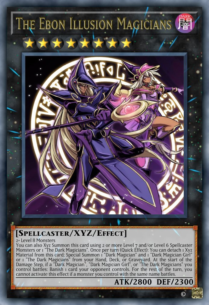 Luis Antonio Hernandez Uribe Posted March 9 Report Share Posted March 9 (edited) Im really late for the party but made some cards. I used Chatgpt to translate the effects cause English isn't my mother language and can do a lot of typos. The design philosophy of this cards are to give some extenders to the archetype, focus on Summoning Dark Magician and give more importance to Dark Magician GIrl, there is a lot of cards that requiere both monsters but DMG is so hard to summon and basically useless that is quite sad how she is totally irrelevant for the archetype and some decks don't have her to avoid bricks. Cards like Magician's Salvation, Dark Magic Expanded, Magicians' Combination are really good cards but needing DMG to be used is what makes them useless. The only answer i could found was to do a real retrain of DMG (with real retrain i mean a retrain that still looks like her, and not like another monster) usefull for the archetype to be at 3 in the Deck. Quote During the Main Phase: Special Summon 1 "Dark Magician" or "Dark Magician Girl" from your Deck, Hand, Graveyard, or Banished Zone (face-up).You cannot Special Summon from the Extra Deck, except Monsters that mention "Dark Magician" or "Dark Magician Girl", the turn you activate this card. Banish this card from your Graveyard: Special Summon 1 "Dark Curtain Token" (Spellcaster/DARK/Level 4/ATK 700/DEF 1600). You can only use each effect of "Arcane-Dark Curtain" once per turn. DM and DMG are really big bricks, IMO running those kinds of Bricks should be rewarded with easy ways to summon them just like Blue-Eyes White Dragon, Magicians' Souls was a good idea but making it too generic for spellcasters made it more usable on other Decks than on DM. Here is a insta-summon but locks you to only Summon from the Extra Deck monsters that mention them to avoid the flood or being used as an engine and, even if gets Ash'ed, you have a small extention Banishing the card to summon a token for the new link cards. Being a Quick Spell, can be used in emergency momments to resummon a DM or a DMG if needed, of course, only during the Main Phase. Quote You can send 1 card that mentions "Dark Magician" from your hand or field to the Graveyard; Special Summon this card from your hand. If this card is Normal or Special Summoned: You can add 1 card that mentions "Dark Magician" from your Deck to your hand, except "Dark Magician Girl - The Grand Apprentice". You can only use each effect of "Dark Magician Girl - The Grand Apprentice" once per turn. This card gains 100 ATK for each card that mentions "Dark Magician" in the Graveyards. I don't understand how a card as popular as DMG haven't got any real retrain with a better effect, good enough to be used at 3 in DM decks. I copied the effect of Nightmare Apprentice, as she is focused on Illusion Monsters, DMG should be focused totally on the Archetype. To avoid her being used in any Deck as an engine, i made her to send a card that specifically mentions "DM". Still maybe send from field is a little broken, should i keep her only to send it from the Hand? And of course, cause her name is not "Dark Magician Girl" on the Deck, she can't be special summoned from the Deck with Arcane-Dark Courtain BUT can be summoned if is in the GY. (Used the art of an already existing card cause i didn't found a good art that still looks like the OG DMG) Quote 1 monster that mentions "Dark Magician" or 1 Spellcaster monster with 700 ATK and 1600 DEF. If this card is Special Summoned: Add 1 DARK Spellcaster monster with 2000 ATK and 1700 DEF from your Deck to your hand. Once per turn, if this card was Link Summoned (Quick Effect): You can Fusion Summon 1 "Palladium" Fusion Monster or a Fusion Monster that mentions "Dark Magician" or "Dark Magician Girl" from your Extra Deck, using monsters from your hand or field as material. Imagine the usual DM duel: You have Rod in hand, no Eternal Soul, no ways to Fusion Summon or any other card to play, Normal summon Rod, gets Ash'ed... that ends your turn, even if you have Magicians' Souls, Soul Servant or Eternal Soul in hand, they are useless alone. One Ash and the whole archetype is destroyed. Now with this extention you can have a Palladium monster in case you have Soul Servant, you can add the DMG retrain for another search or you can use the token from the Courtain above to have 2 monsters on field. It requires a monster that mentions DM to avoid her being too generic and the other monster requeriments can only be meet by the token Courtain summons. Maybe the Fusion effect is a little too strong, but DM needed something like "Blazing Cartesia" for monsters that mention DM or DMG. Still, the fusion effect can be removed and maybe added to a retrain of Timaeus that is not that slow. Plus, we finally have a useful Palladium Mana card, the old one doesn't even looks like Mana and the effect was as meh that not a lot of people remembers her. Quote 2 Spellcaster Monsters. This card's name becomes "Dark Magician Girl" while it is on the field or in the Graveyard. While this card points to a monster whose name is "Dark Magician", it is unaffected by your opponent's card effects. This card gains 150 ATK for each face-up card on the field and/or in the Graveyards that mentions "Dark Magician" (excluding this card). Once per turn, you can banish 1 Spell Card from your hand, field, or Graveyard: Activate 1 "Piercing the Darkness" or "Magician's Salvation" directly from your Deck. More than a retrain i feel like this is a more powerfull version of the DMG just like the multiple versions of DM. The first Link monster on the core of this new strategy, her name becomes DMG on field and GY to keep good use of cards that requiere both names like "Bond Between Teacher and Student", "Dark Magic Twin Burst", "Dark Magic Expanded", "Magicians’ Combination" and of course "Magician’s Salvation" to resummon her if needed. Making her to be unnafected if she is poiting at DM and being able to activate 