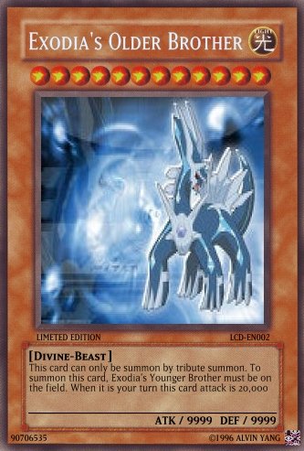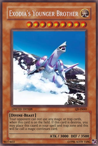 OhEmGee Posted June 5, 2008 Report Share Posted June 5, 2008 Yeah...Um...The first two are pokemon....The second one is a taaad bit overpowered. You used pics for real cards and.....Can I just say you suck? -1000/10 Link to comment Share on other sites More sharing options...