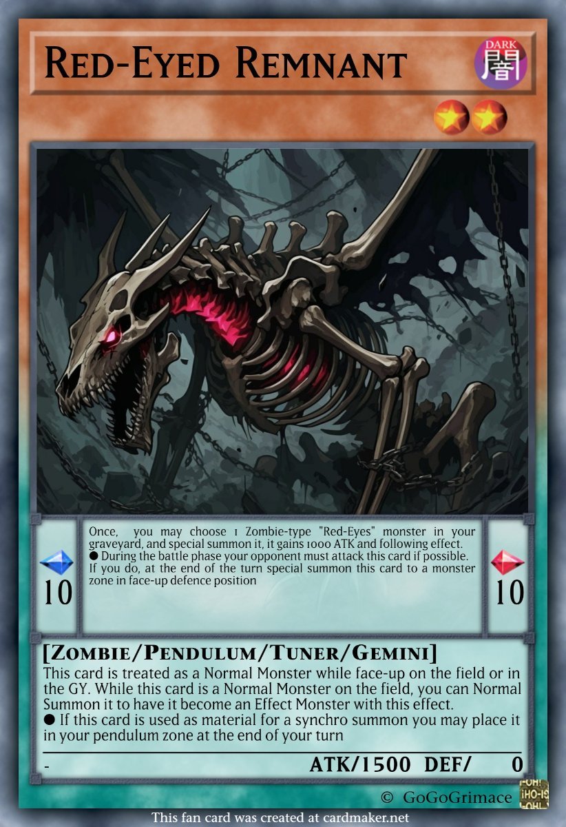 Brody Buckley Posted February 18 Report Share Posted February 18 After many years of waiting for more red eyes zombie support I decided to make my own! The archetype utilises gemini monsters in unique ways and adds pendulum and link support to the red-eyes archetype. This is my first time making my own cards, so I apologize for incorrect syntax. Quote Link to comment Share on other sites More sharing options...