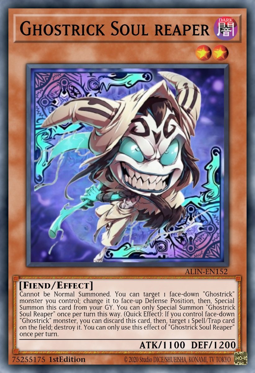 Yuma Kaiba Posted March 13 Report Share Posted March 13 Ghostrick False Angel [DARK] Fairy/Link/Effect (1500/Link-3) 2+ "Ghostrick" monsters You can also use a face-down "Ghostrick" monster you control as material to Link Summon this card. Gains 300 ATK for each "Ghostrick" card on the field and the GY's. If this card is in your GY or banishment, except the turn this card was sent there: You can target 2 face-down "Ghostrick" monsters you control; shuffle it into the Deck, and if you do, Special Summon this card, then, inflict 1500 damage to your opponent. You can only use this effect of "Ghostrick False Angel" once per turn. Ghostrick Pyron [DARK] Pyro/Link/Effect (1100/Link-2) 2 "Ghostrick" monsters You can also use a face-down "Ghostrick" monster you control as material to Link Summon this card. If this card is linked to face-down or "Ghostrick" monsters, this card cannot be targeted by your opponent's card effects, or their monsters' attacks. Once per turn, monsters this card point to cannot be destroyed by battle or card effects, also, it gains ATK equal to this card original ATK. Ghostrick Morrigan [DARK] Rank 2/Fiend/Xyz/Effect (600/2300) 2 Level 2 "Ghostrick" monsters If this card is Xyz Summoned: You can target up to 2 "Ghostrick" cards in your GY; attach them to this card as material. Once, while this card face-up on the field if your opponent activates a card or effects: You can negate the activation, and if you do, destroy it, then, you can attach 1 "Ghostrick" card from your hand to this card. You can only use each effect of "Ghostrick Morrigan" once per turn. Ghostrick Nightmare Night (Counter Trap) When a Spell/Trap Card, or monster effect, is activated, while you control face-down "Ghostrick" monster: Pay 500 LP; negate the activation, and if you do, destroy that card. If you control 2 or more face-down "Ghostrick" monsters, you can activate this card from your hand. You can only activate 1 "Ghostrick Nightmare Night" per turn. Ghostrick Beyond Spooky [Continuous Spell] You can activate each of the following effect once per turn:️If a "Ghostrick" Link Monster(s) is Link Summoned: You can target 1 "Ghostrick" monster in your GY that was used for its Material; add that target to your hand.️If "Ghostrick" Xyz Monster(s) is Xyz Summoned: You can add 1 "Ghostrick" monster from your Deck to your hand. Ghostrick Invitation [Quick-Play Spell] If you control a face-down monster, target 1 face-up monster your opponent controls; change it to face-down Defense Position, then, you can Special Summon 1 "Ghostrick" monster from your Deck in face-down Defense Position. You can only activate 1 "Ghostrick Invitation" per turn. Ghostrick Metal Ghoul [DARK] LV 3/Zombie/Effect (1500/0) Cannot be Normal Summoned. You can target 1 face-down "Ghostrick" monster you control; change it to face-up Defense Position, then, Special Summon this card from your hand. You can only Special Summon "Ghostrick Metal Ghoul" once per turn this way. (Quick Effect): If your opponent activate monster effects, change this card to face-down Defense Position; negate the activation, and if you do, destroy it. You can only use this effect of "Ghostrick Metal Ghoul" once per turn. Ghostrick Chief Voodoo [DARK] LV 3/Spellcaster/Effect (1700/500) Cannot be Normal Summoned. You can target 1 face-down "Ghostrick" monster you control; change it to face-up Defense Position, then, Special Summon this card from your GY. You can only Special Summon "Ghostrick Chief Voodoo" once per turn this way. (Quick Effect): If you control face-down "Ghostrick" monster, you can discard this card; add 1 "Ghostrick" card from your Deck or GY to your hand (except, "Ghostrick Chief Voodoo".) You can only use this effect of "Ghostrick Chief Voodoo" once per turn. Ghostrick Pharaoh Mummy [DARK] LV 3/Zombie/Effect (0/1500) Cannot be Normal Summoned. During your Standby Phase, you can target 1 face-down "Ghostrick" monster you control; change it to face-up Defense Position, then, Special Summon this banished card. You can only Special Summon "Ghostrick Pharaoh Mummy" once per turn this way. You can target up to 2 "Ghostrick" monsters with different names in your GY (except, "Ghostrick Pharaoh Mummy"); banish this card from your hand, then, Special Summon those target in face-down Defense Position. You can only use this effect of "Ghostrick Pharaoh Mummy" once per turn. Ghostrick Spirit Warlock [DARK] LV 3/Spellcaster/Effect (1200/1000) Cannot be Normal Summoned. You can target 1 face-down "Ghostrick" monster you control; change it to face-up Defense Position, then, Special Summon this card from your GY. You can only Special Summon "Ghostrick Spirit Warlock" once per turn this way. If you control face-down "Ghostrick" monster: You can banish 1 "Ghostrick" card in your GY, then, discard this card; Draw 2 cards. You can only use this effect of "Ghostrick Spirit Warlock" once per turn. Ghostrick Soul Reaper [DARK] LV 2/Fiend/Effect (1100/1200) Cannot be Normal Summoned. You can target 1 face-down "Ghostrick" monster you control; change it to face-up Defense Position, then, Special Summon this card from your GY. You can only Special Summon "Ghostrick Soul Reaper" once per turn this way. (Quick Effect): If you control face-down "Ghostrick" monster, you can discard this card, then, target 1 Spell/Trap card on the field; destroy it. You can only use this effect of "Ghostrick Soul Reaper" once per turn. Ghostrick Gargoyle [DARK] LV 2/Fiend/Effect (800/1200) Cannot be Normal Summoned. During your Standby Phase, you can target 1 face-down "Ghostrick" monster you control; change it to face-up Defense Position, then, Special Summon this banished card. You can only Special Summon "Ghostrick Gargoyle" once per turn this way. If you control face-down "Ghostrick" monster: You can banish this card from your hand, then, target 1 monster your opponent control; send that target to the GY. You can only use this effect of "Ghostrick Gargoyle" once per turn. Quote Link