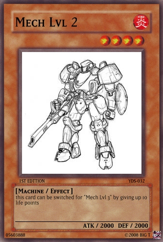 Καsτοr Posted June 17, 2008 Report Share Posted June 17, 2008 Wow, OCG is pretty bad. Mechs 1- 7 should say something like: Once per turn,You may Tribute this monster in order to Summon Mech Lv. 2 or something like that. Link to comment Share on other sites More sharing options...