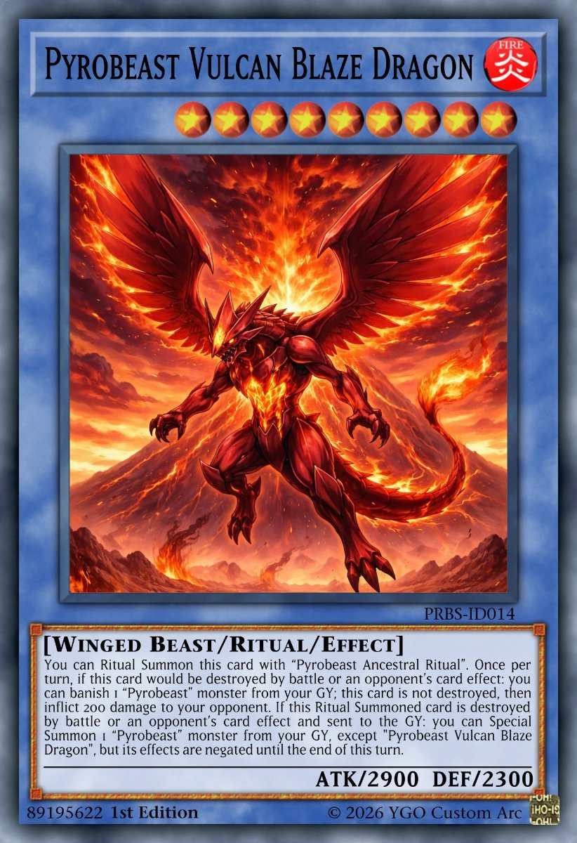 Hamsyah Musthofa Posted January 29 Report Share Posted January 29 (edited) Hi guys, I plan to create my own custom Yu-Gi-Oh archetypes for my social media content, one of them is called "Pyrobeast". It's a burning deck like trickstar, but focused on Xyz, Ritual and Fusion monster. I've create the first edition of 21 cards including monster, spell, and trap. I also create the lore of the archetype and the character that using the deck inlcuding Ace Monster. I've posted some of it in my Instagram account here: Check my custom arc here, feel free to visit the account. I need suggestion about the archetype prospect for Master Duel or TCG meta since I only play Yu-Gi-Oh in Speed Duel format like Duel Links. Here some of the cards: Edited January 29 by Hamsyah Musthofa Quote Link to comment Share on other sites More sharing options...