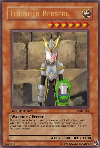 Kohapuu Posted July 4, 2008 Report Share Posted July 4, 2008 Hi was taking a look at your cards and they are really good.well here i leave you my own thundre berserk. =)(this is not made to be a theme deck card) Link to comment Share on other sites More sharing options...