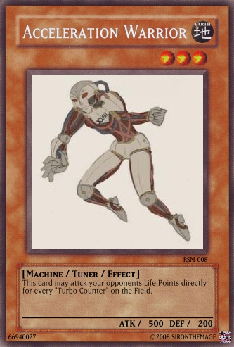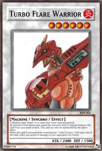 When this card is summoned by removing one "Turbo Counter" from your side of the field, inflict 500 points of damage to your opponents Life Points.
