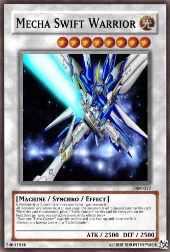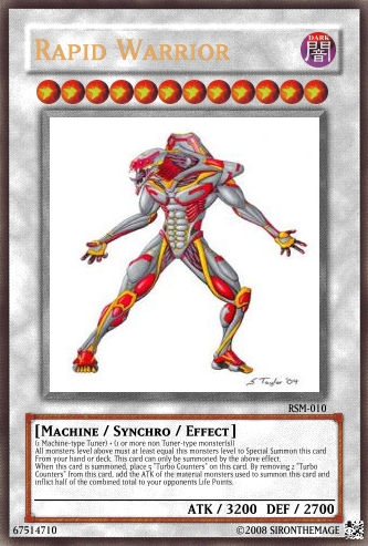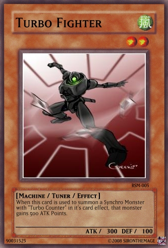 When this card is summoned, place 4 "Turbo Counters" on this card. This card gains 300 attack points for every "Turbo Counter" on it. Each time this card attacks, remove one "Turbo Counter" from this card. By removing 2 "Turbo Counters" from this card you may special summon one material monster used to summon this card from the graveyard.