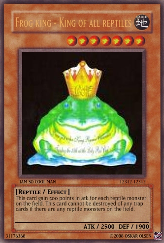 Imadjinn Posted June 28, 2008 Report Share Posted June 28, 2008 Frogs aren't reptiles. Minus 1,000,000 Points. Link to comment Share on other sites More sharing options...