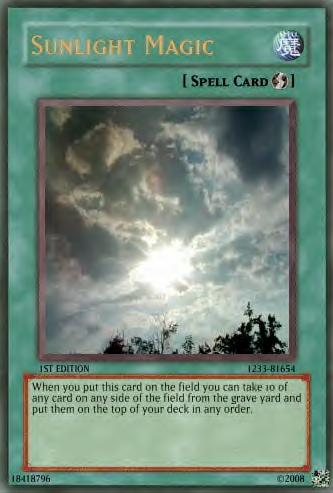 TR_Headshot Posted July 4, 2008 Report Share Posted July 4, 2008 Please work on your OCG. It's also pretty overpowered. Add a drawback please. Link to comment Share on other sites More sharing options...