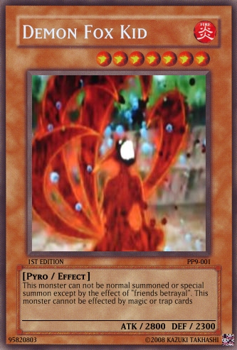 HellKaiserofDarkness Posted July 11, 2008 Report Share Posted July 11, 2008 Here's what you should change.For the first card you should capitalize special summon' date=' normal summon and all those terms. Instead of magic, say spell. Also, capitalize Friend's Betrayal. This is basically the OCG errors. Try to get a better pic.For the second card, you have OCG errors. You need to capitalize Life Points. Don't capitalize card.For the third card, you need to capitalize ritual summoned and spell card. Level stars need to be capitalized.The last card is okay. Overall, you just have OCG errors. Great job.[/quote'] i agree. This should be in pop culture. Link to comment Share on other sites More sharing options...