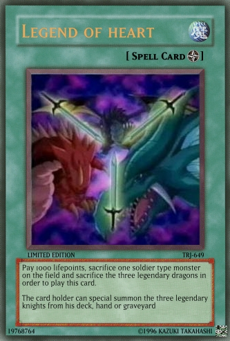 bendelina Posted July 13, 2008 Report Share Posted July 13, 2008 The legendary dragon that Yugi uses in the programThe legendary dragon that Kiaba uses in the programThe legendary dragon that Joey uses in the programThe card that unleashes the knighs Link to comment Share on other sites More sharing options...