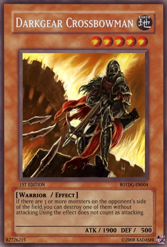 Kadashi Posted July 30, 2008 Report Share Posted July 30, 2008 Darkgear and Lightshine would be two armies.Here are some cards I made,this topic will be updated. I will be making more soon. hm,I can't see the pictures :S In case you can't neither here they are in attachments Link to comment Share on other sites More sharing options...