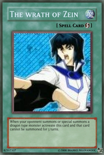 Bane Posted September 1, 2008 Report Share Posted September 1, 2008 This is my spell car The wrath of Zein. When a dragon type monster is summond by your oponnent activeate The wrath of Zein and that monster cannot be summoned for your 3 turns. Link to comment Share on other sites More sharing options...