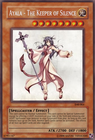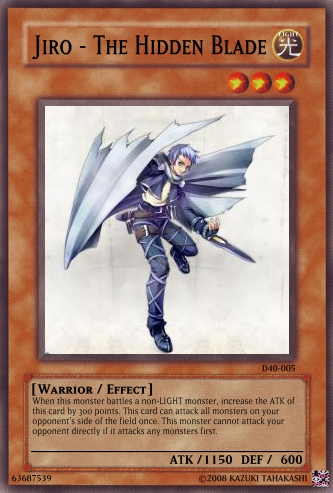 These are cards I made while referencing some existing card effects to ensure maximum realism(some I had to make up though,obviously). I got the pics that I used while browsing the wallpapers of a certain MMMORPG and thought that they'd make for some nice Yu-Gi-Oh! trading card game cards. There's also a random Legend of Zelda reference in there too. Tell me what you think!