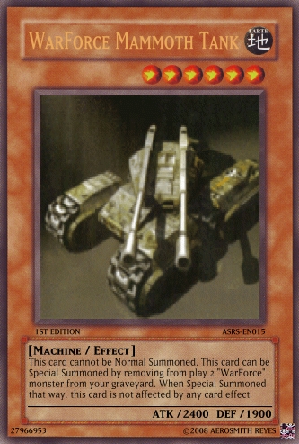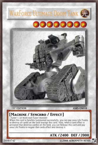 kazuki01 Posted October 6, 2008 Report Share Posted October 6, 2008 :D Hi guys I'm new here ^__^ Anyways, I just wanna test what would you guys think about these cards i made. Actually, it's for the deck I've developing here. Hope you all like them ^^ Specially my master piece. WarForce Ultimate Doom Tank. Have a nice day all. ^___^ Link to comment Share on other sites More sharing options...