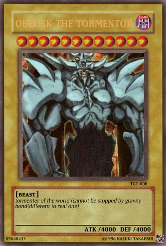 trader 55 Posted October 19, 2008 Report Share Posted October 19, 2008 my o belisk has to be browne because i dont know how to do coulors ecxeptfor rituals traps spells or effects Link to comment Share on other sites More sharing options...
