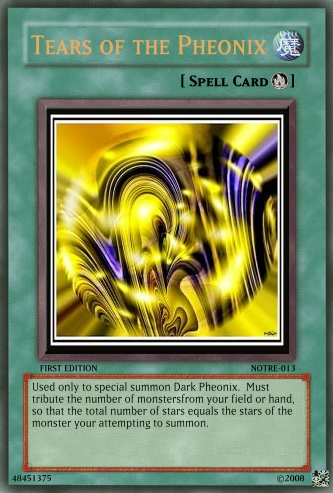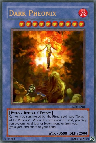 Professor Cobra Posted December 4, 2008 Report Share Posted December 4, 2008 Use image tags. Here is a short list:Special Summon Ritual Spell Card format is wrong, copy and paste from a real Ritual Spell Card.Ritual Spell CardThe girl in Dark Phoenix is topless,you can, not you may1, not one, Level 4 or lowerGraveyardLower level to 9Okay pics5/10 Link to comment Share on other sites More sharing options...